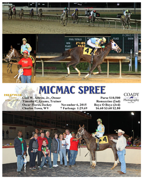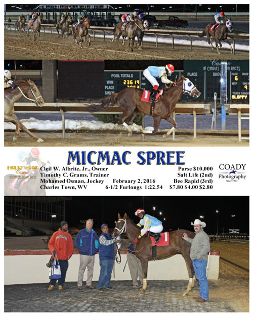 Micmac Spree Current winner bred by Mares' Nest Farm |