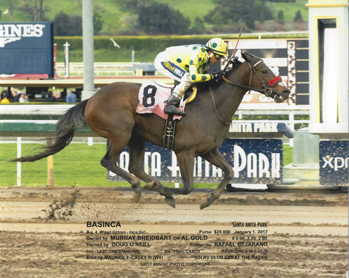 Basinca, bred by Mares' Nest Farm, wins Starter Allowance at Santa Anita |