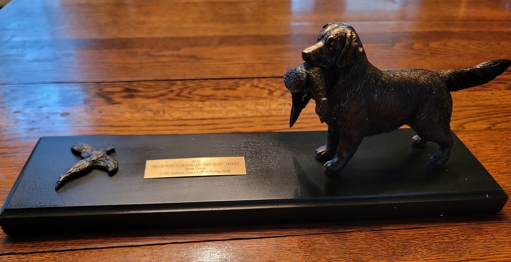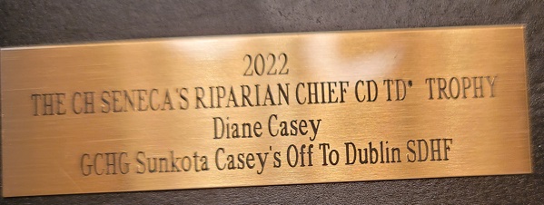 Diane was presented with the THE CH. SENECA’S RIPARIAN CHIEF CD, TD TROPHY (awarded to the breeder of the dog winning the Rockhaven Speedwell Pluto Trophy) in recognition for breeding Sunkota Casey's Off to Dublin, the #1 Golden for 2022.